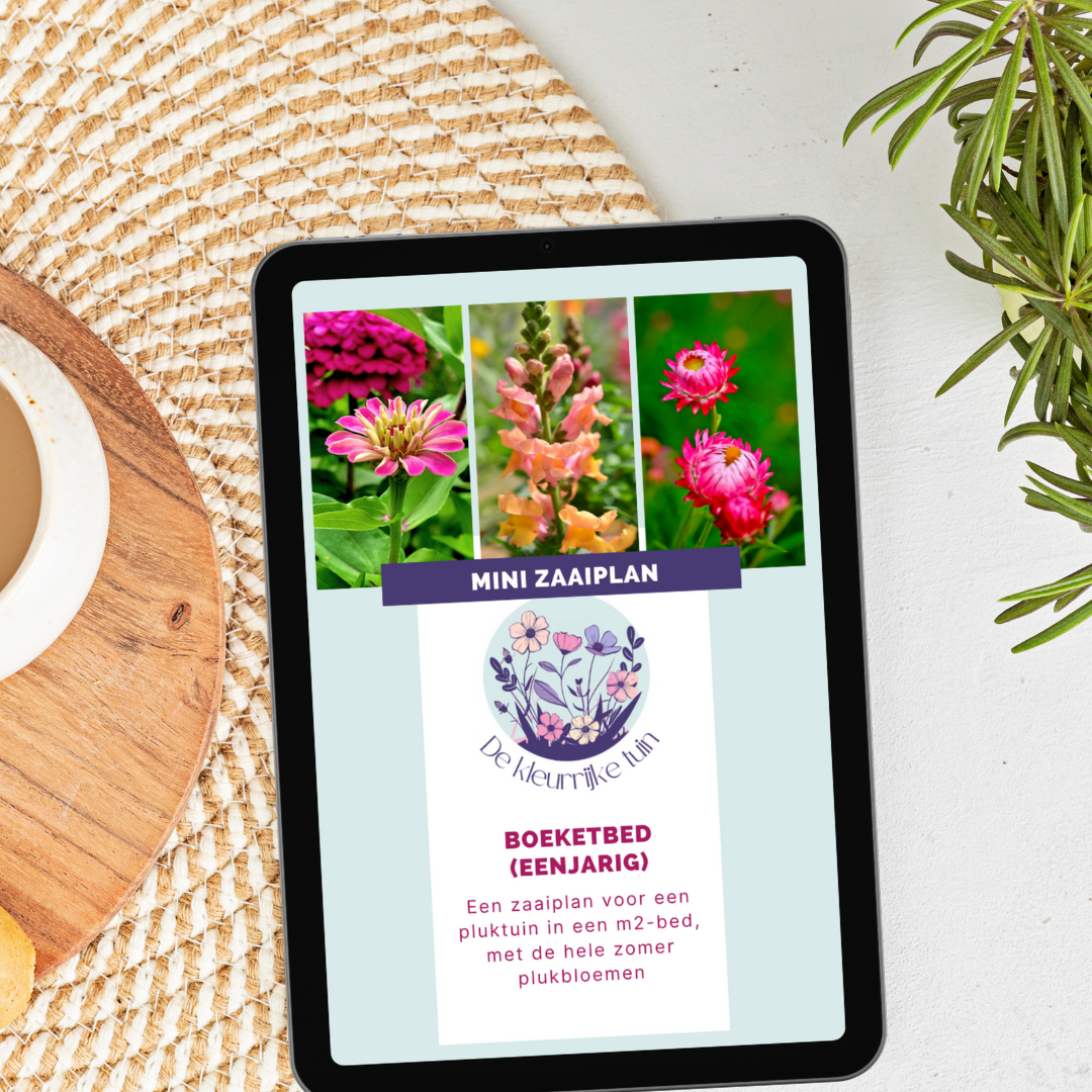 In dit e-book geef ik jou een kant-en-klaar zaaiplan voor een mini-pluktuin. Dit plan is voldoende voor een (moestuin)bak van 1 m2, bij voorkeur met 9 gelijke vakken. Aan het einde van dit zaaiplan vind je suggesties om je pluktuin mee aan te vullen, mocht je meer ruimte hebben in je tuin of in losse potten. Met dit zaaiplan pluk jij iedere 2 weken een boeket uit je tuin!